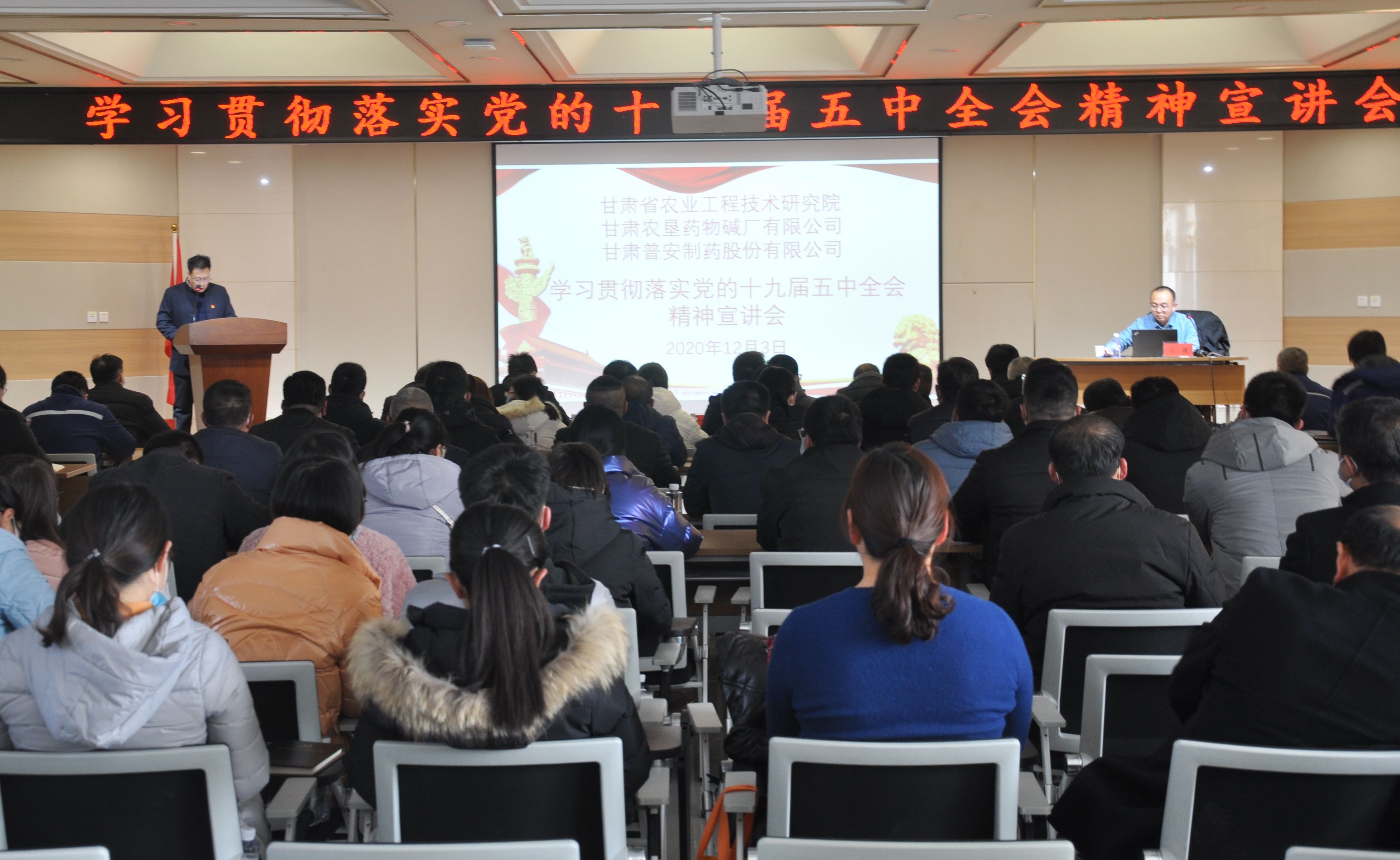 甘肅藥業(yè)集團(tuán)普安制藥股份有限公司、甘肅省農(nóng)墾工程技術(shù)研究院、甘肅農(nóng)墾藥物堿廠有限公司聯(lián)合召開學(xué)習(xí)貫徹黨的十九屆五中全會(huì)精神宣講會(huì)