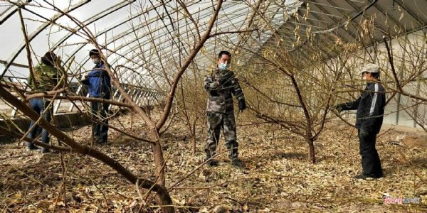在永昌農(nóng)場(chǎng)的溫室大棚內(nèi),工作人員正在修剪油桃樹枝,讓每株樹冠保持一定形狀和大小,樹體結(jié)構(gòu)合理,枝條疏密得當(dāng),便于生長(zhǎng)管理。12座大棚共計(jì)1200多棵樹,預(yù)計(jì)20日前完成修剪。農(nóng)場(chǎng)及早聯(lián)系農(nóng)資調(diào)運(yùn),為油桃提前上市做好準(zhǔn)備。