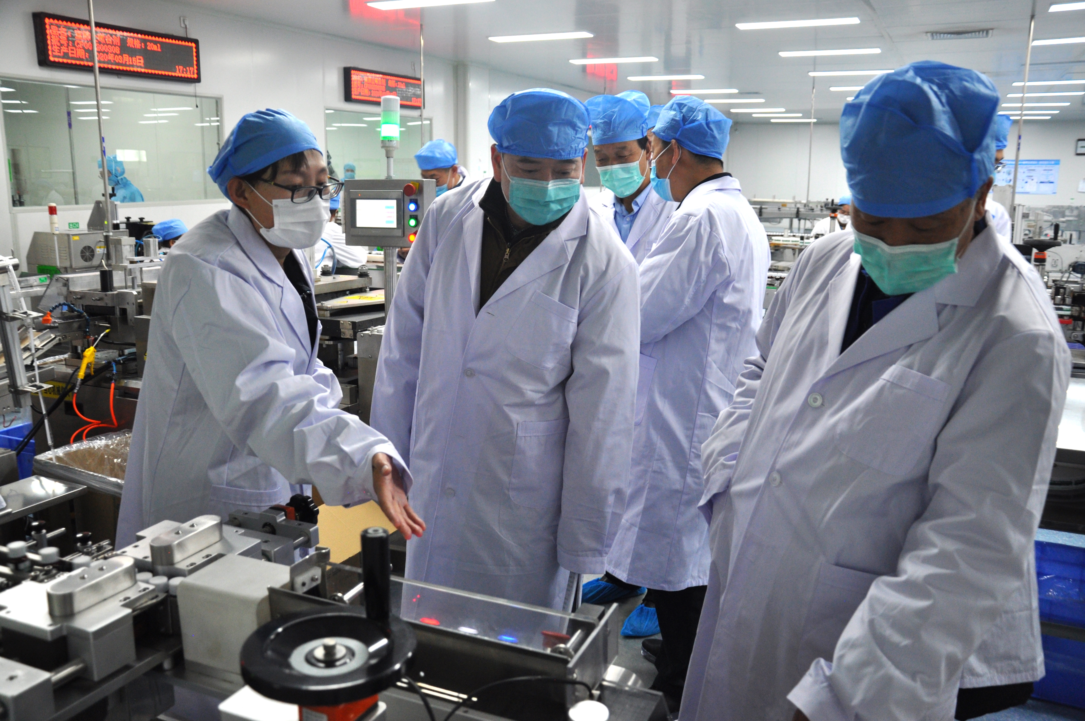 張嚴明一行走進生產(chǎn)車間,詳細了解防控措施落實、生產(chǎn)運行等情況。公司黨委委員、常務副總經(jīng)理宋敏平匯報:普安公司依靠甘肅特藥資源優(yōu)勢生產(chǎn)宣肺止嗽合劑,產(chǎn)品已覆蓋26個省市,單品種銷售收入近3億元。2019年8月1日公司劃轉(zhuǎn)省藥業(yè)集團,今年已啟動宣肺止嗽合劑二期擴產(chǎn)改造項目,預計第三季度完成建設(shè)。公司按照中央、省委、省政府的決策部署,一手抓疫情防控、一手抓復工復產(chǎn),已生產(chǎn)75%醫(yī)用酒精48噸,全部統(tǒng)一調(diào)配使用;同時,公司捐贈了75%醫(yī)用酒精5噸多、宣肺止嗽合劑6700瓶。在聽宋敏平關(guān)于公司有關(guān)工作匯報后,張嚴明對企業(yè)疫情防控、復工復產(chǎn)和政策落實等工作給予了充分肯定,對企業(yè)員工的辛勤付出表示感謝。