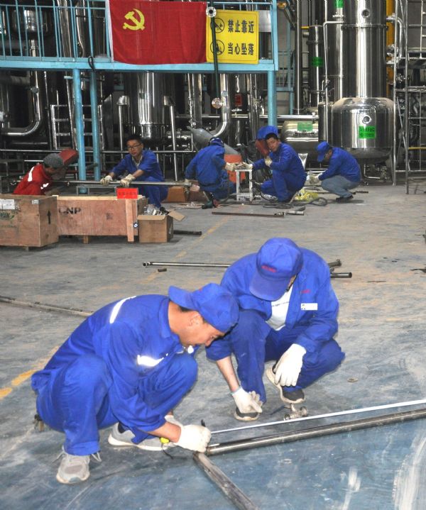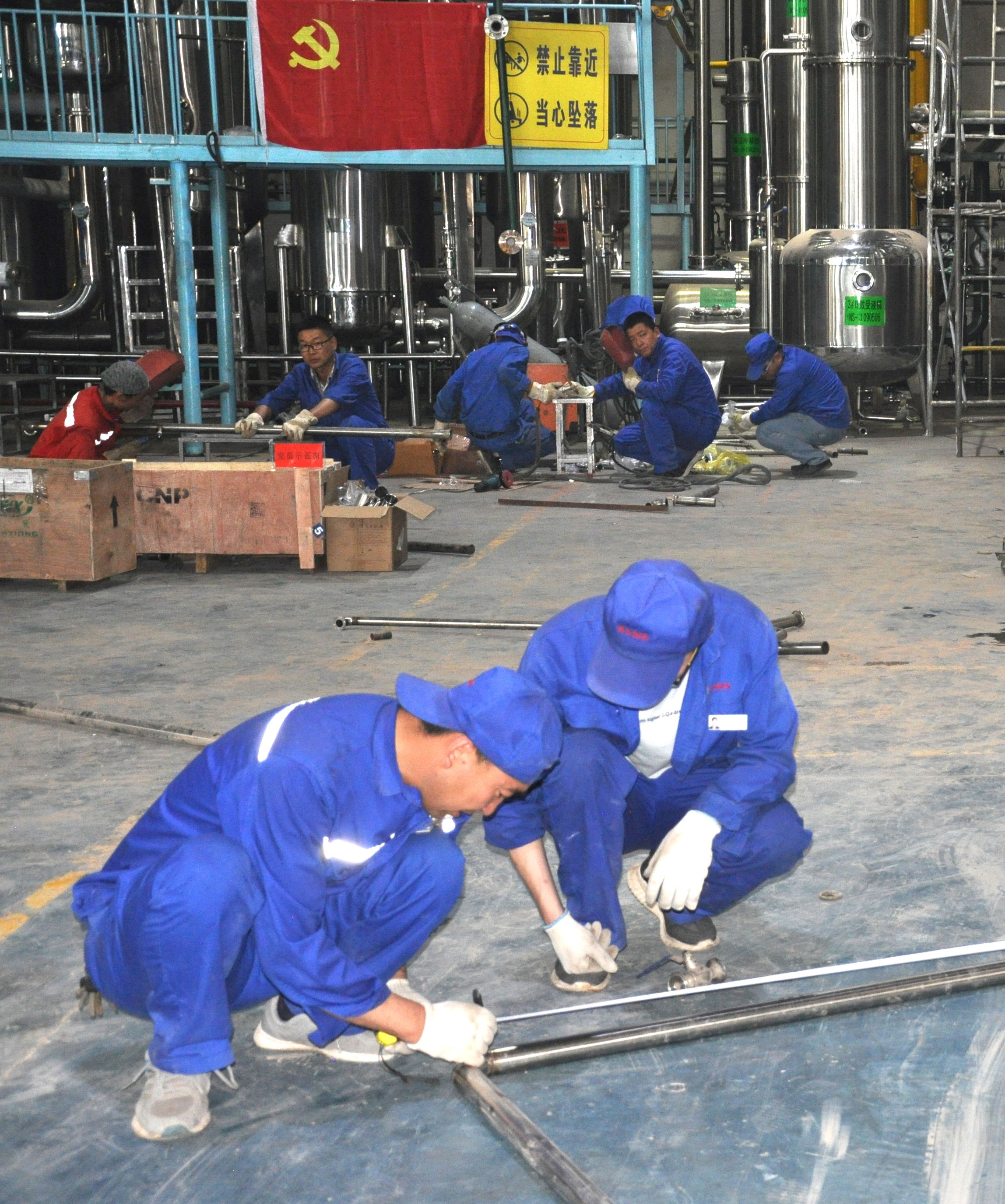 7月中旬,公司正式停機(jī),公司領(lǐng)導(dǎo)、生產(chǎn)管理部、維修班及公司技術(shù)人員成立了技改小組,對(duì)車(chē)間廠房、設(shè)備設(shè)施及管線等進(jìn)行施工安裝。為了保證項(xiàng)目進(jìn)度,確保擴(kuò)產(chǎn)改造工程順利進(jìn)行,公司黨員充分發(fā)揮黨員先鋒模范作用,積極開(kāi)展技術(shù)傳幫帶,自發(fā)組織設(shè)立了三個(gè)“黨員示范崗”。黨員領(lǐng)導(dǎo)干部帶頭工作在一線,帶領(lǐng)職工齊心協(xié)力攻克難題,不辭辛勞的加班加點(diǎn)工作。截至7月22日,提取車(chē)間廠房擴(kuò)建、提取罐、濃縮罐等已安裝完成,部分管線也已完成更換,新增的管道正在進(jìn)行安裝;配制灌裝車(chē)間的功能間擴(kuò)建已完成,配制罐和純化水儲(chǔ)罐也已安裝完成,正在進(jìn)行管線連接,空調(diào)系統(tǒng)的安裝也在同時(shí)進(jìn)行。