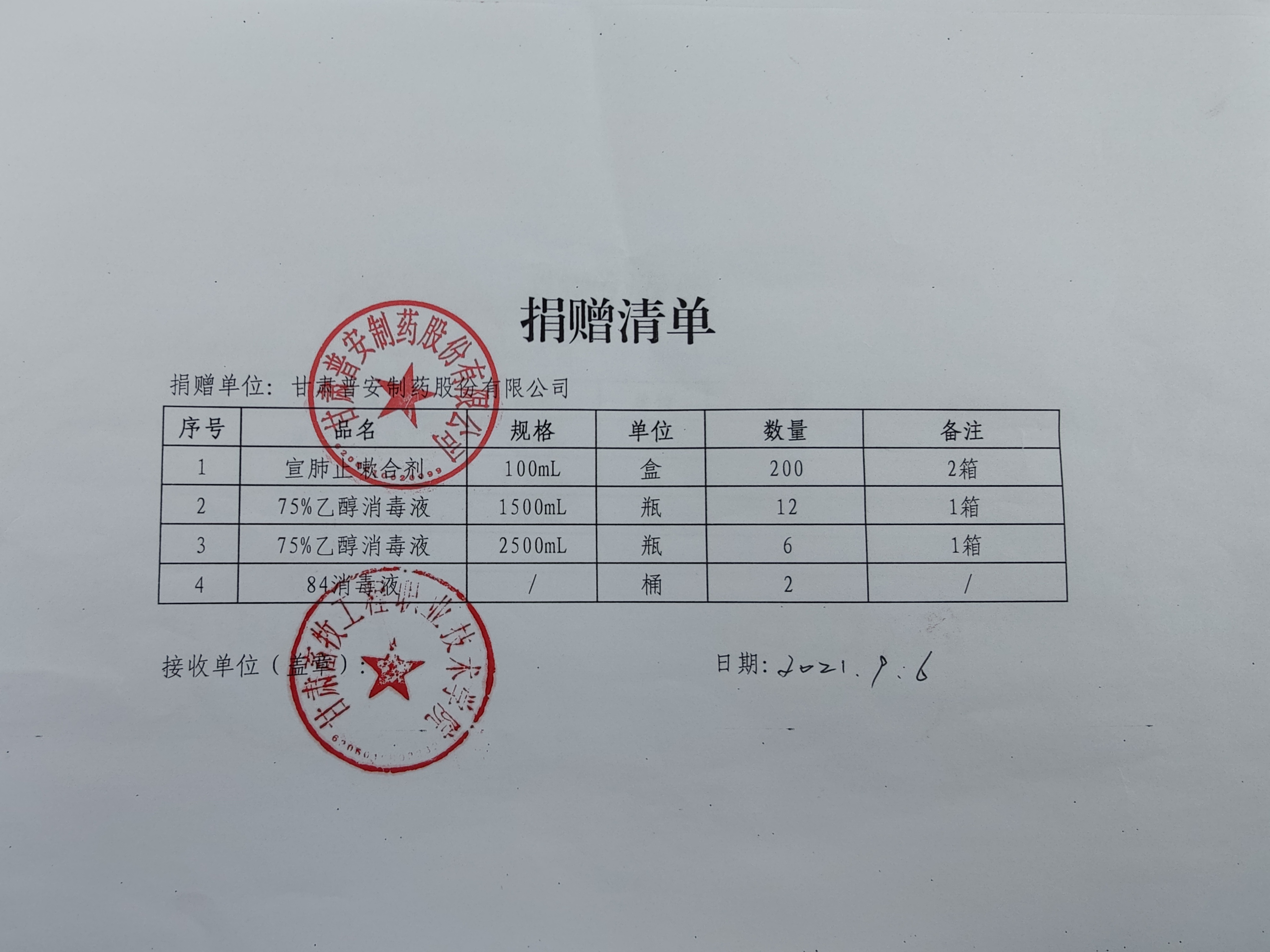 甘肅藥業集團普安制藥(以下簡稱:普安制藥)自成立以來,一直大力弘揚“普惠眾生、安康萬家”的企業理念,本著建設一流制藥企業、提供一流產品服務的目標,堅持黨領導企業,堅持創新發展,穩健經營。在企業發展的同時更是懷有對國家、對民族、對社會的責任和擔當,將“回報于社會”作為一項重要內容。