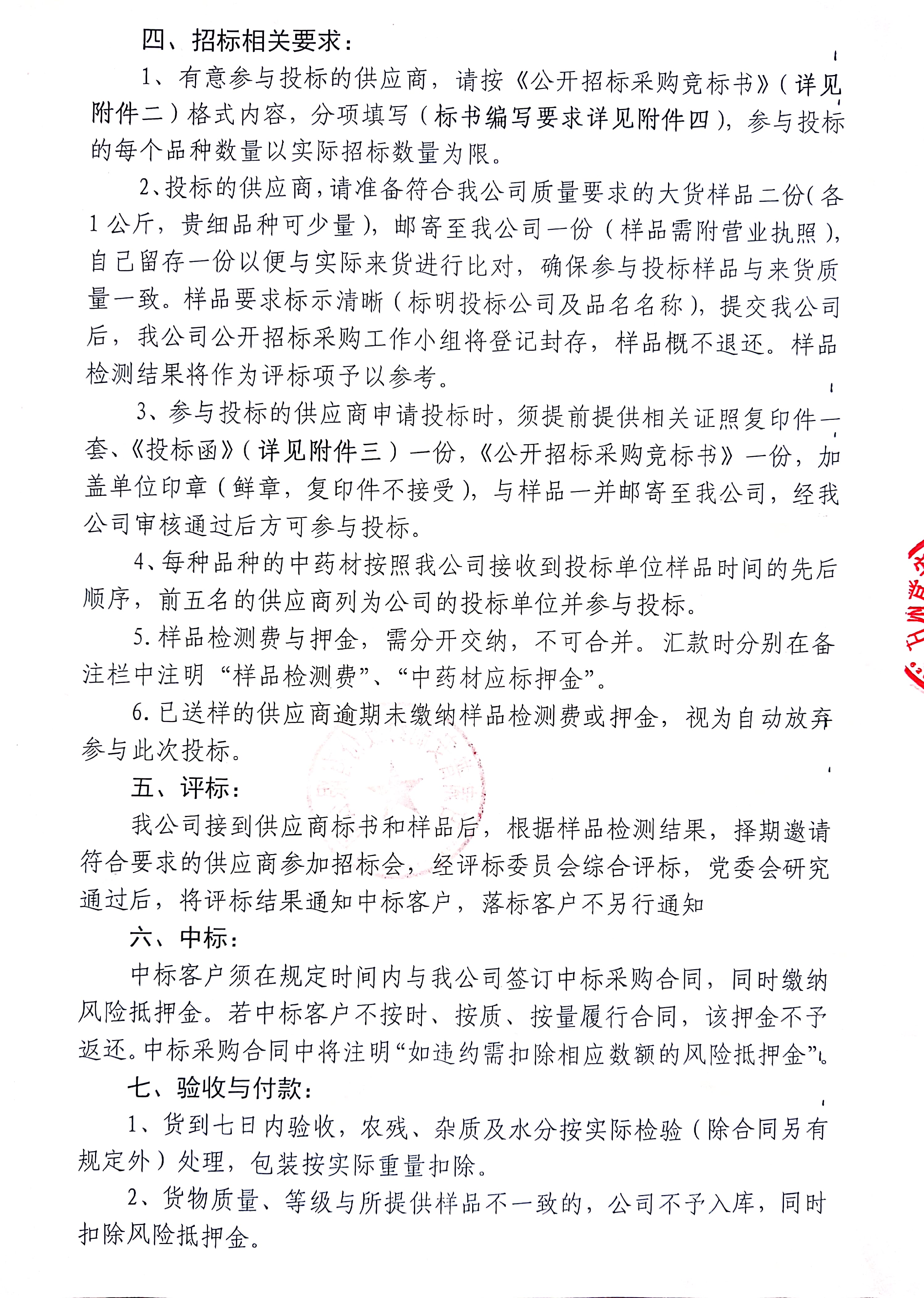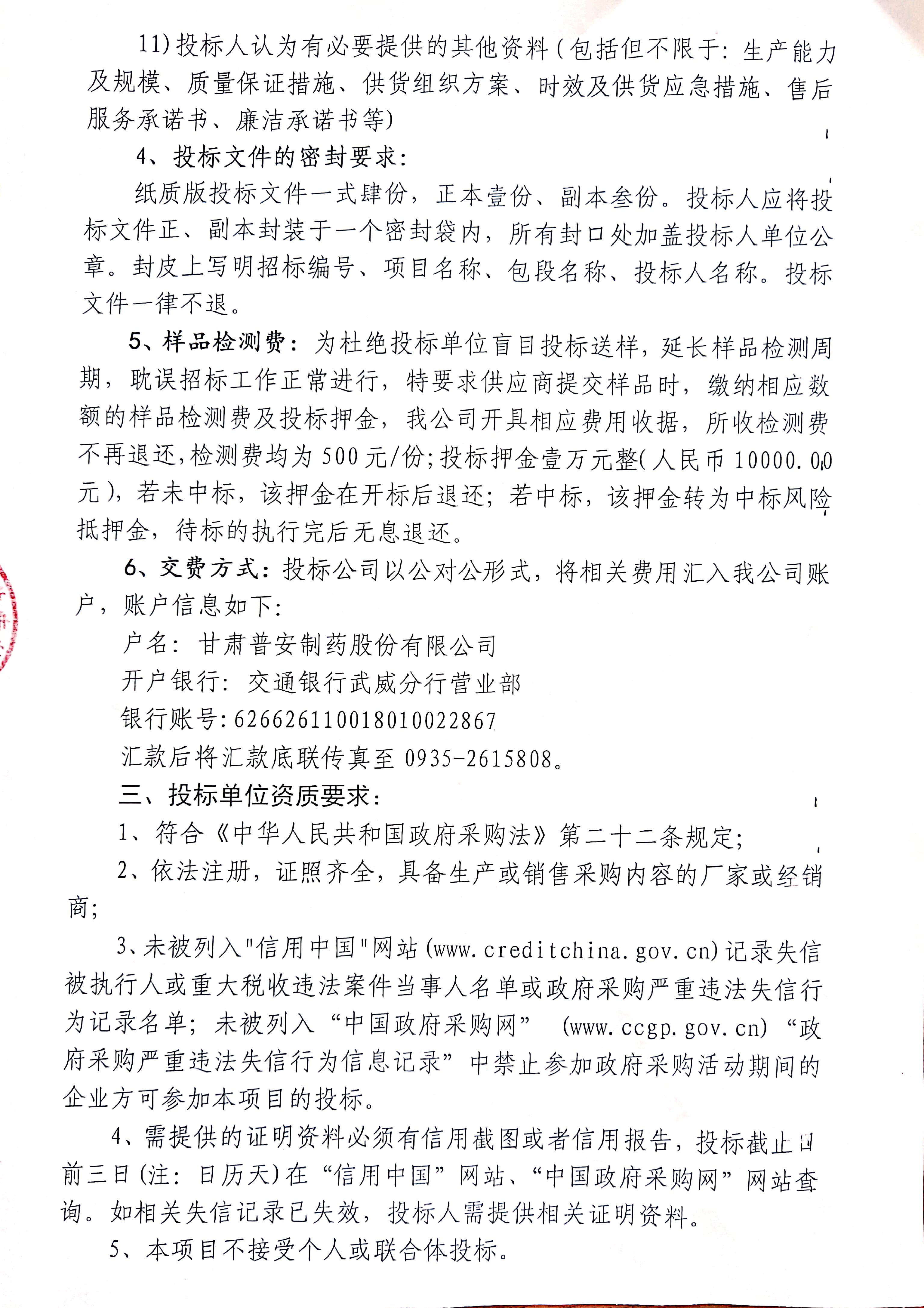 甘肅普安制藥股份有限公司 2021年9月-2022年9月中藥材公開招標采購公告