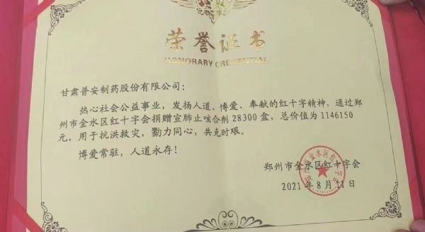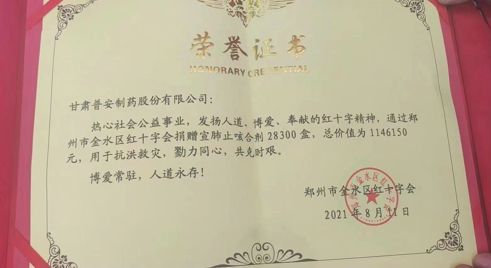 近期,國(guó)內(nèi)多地相繼發(fā)生新冠疫情,疫情防控形勢(shì)非常嚴(yán)峻、復(fù)雜,而河南省多地又受到洪澇災(zāi)害影響,洪澇災(zāi)害后面臨著災(zāi)情、疫情雙重挑戰(zhàn)。為履行社會(huì)責(zé)任,彰顯“一方有難,八方支援”的擔(dān)當(dāng),作為國(guó)有企業(yè),甘肅藥業(yè)集團(tuán)普安制藥會(huì)同中華中醫(yī)藥學(xué)會(huì)第一時(shí)間組織抗疫物資的捐贈(zèng)(價(jià)值114.6萬元的藥品)供災(zāi)后防疫使用,助力河南省做好災(zāi)后疫情防控工作。