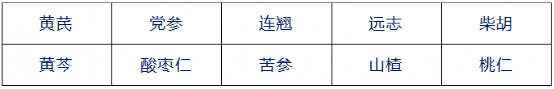 黃芪、柴胡、元胡、丹參、附子、杜仲、天麻、豬苓、黃芩、山茱萸