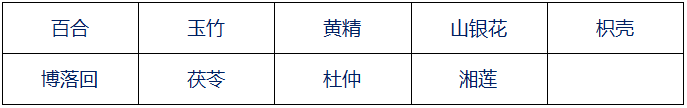 浙貝母、白術、元胡、玄參、杭白芍、杭白菊、浙麥冬、溫郁金