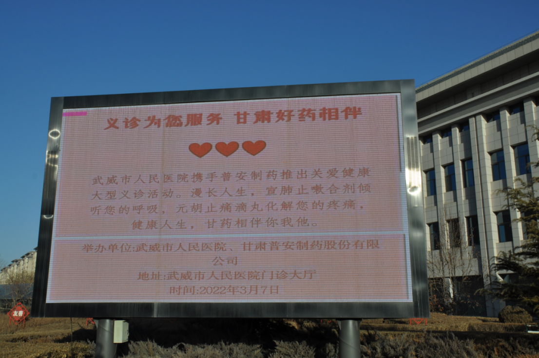3月7日,普安制藥一行七人前往武威市人民醫(yī)院開展“慶三·八,關(guān)愛婦女”慰問活動,并聯(lián)合武威市人民醫(yī)院開展“相約三月 關(guān)愛健康”義診活動,為全市人民送醫(yī)送藥送健康。向奮戰(zhàn)在抗“疫”一線及醫(yī)院各科室女醫(yī)護(hù)人員致以節(jié)日的問候和誠摯的祝福!并借助此次活動向醫(yī)務(wù)工作者及廣大市民宣傳、推介了宣肺止嗽合劑及元胡止痛滴丸。