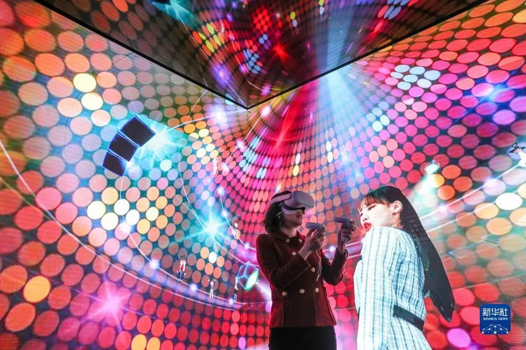 2022年3月1日,一名女子在西班牙巴塞羅那2022世界移動通信大會上通過虛擬現(xiàn)實技術在“元宇宙”中體驗音樂會。新華社記者 鄭煥松 攝