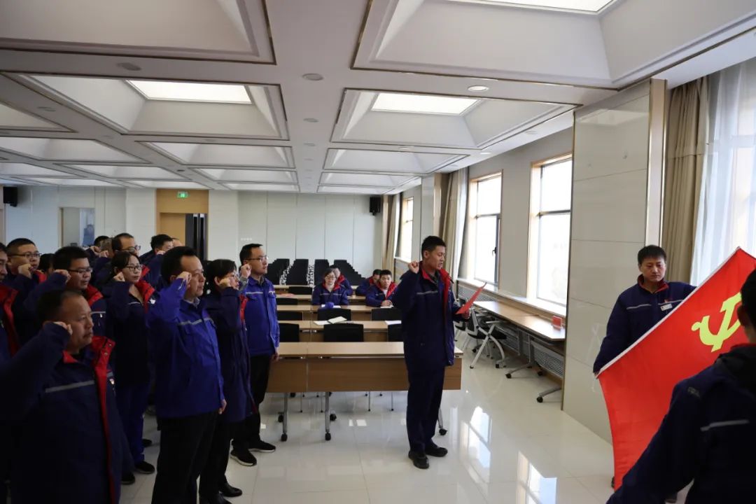大會在莊嚴的國歌聲中拉開帷幕,全體黨員面向鮮紅的黨旗,重溫入黨誓詞并莊嚴宣誓。