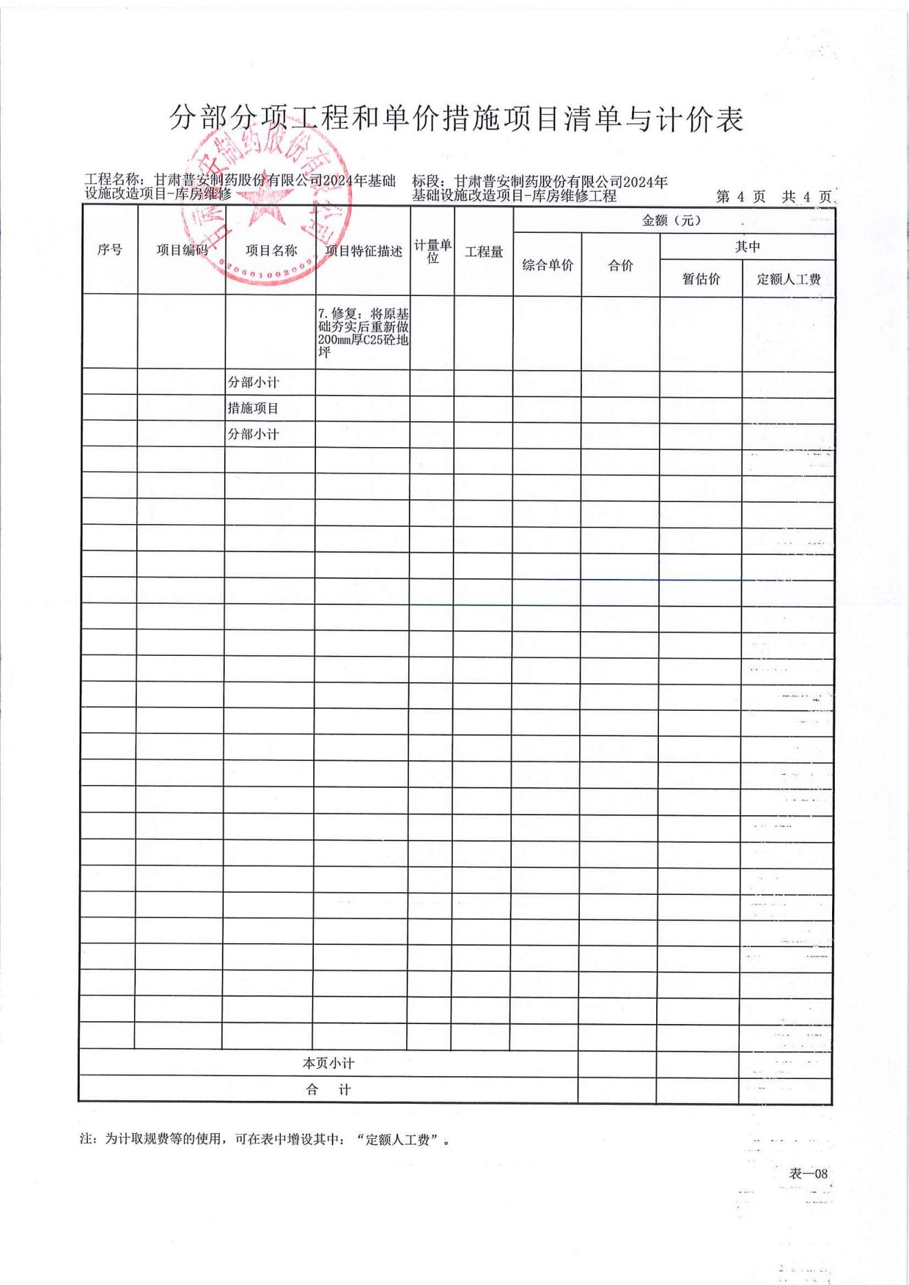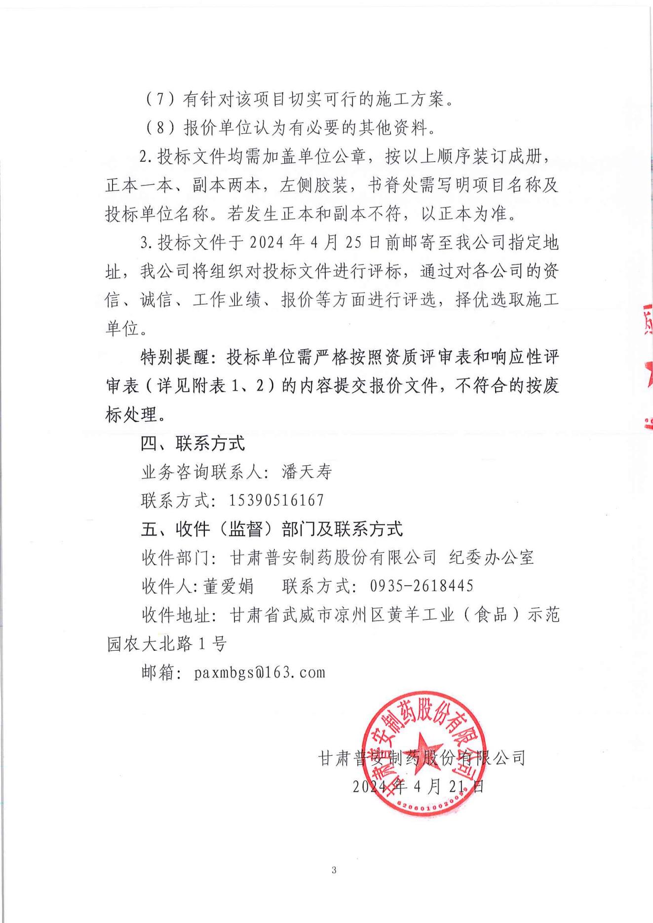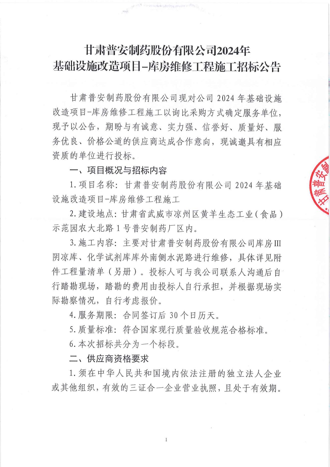 甘肅普安制藥股份有限公司2024年基礎(chǔ)設(shè)施改造項(xiàng)目-庫(kù)房維修工程施工招標(biāo)公告