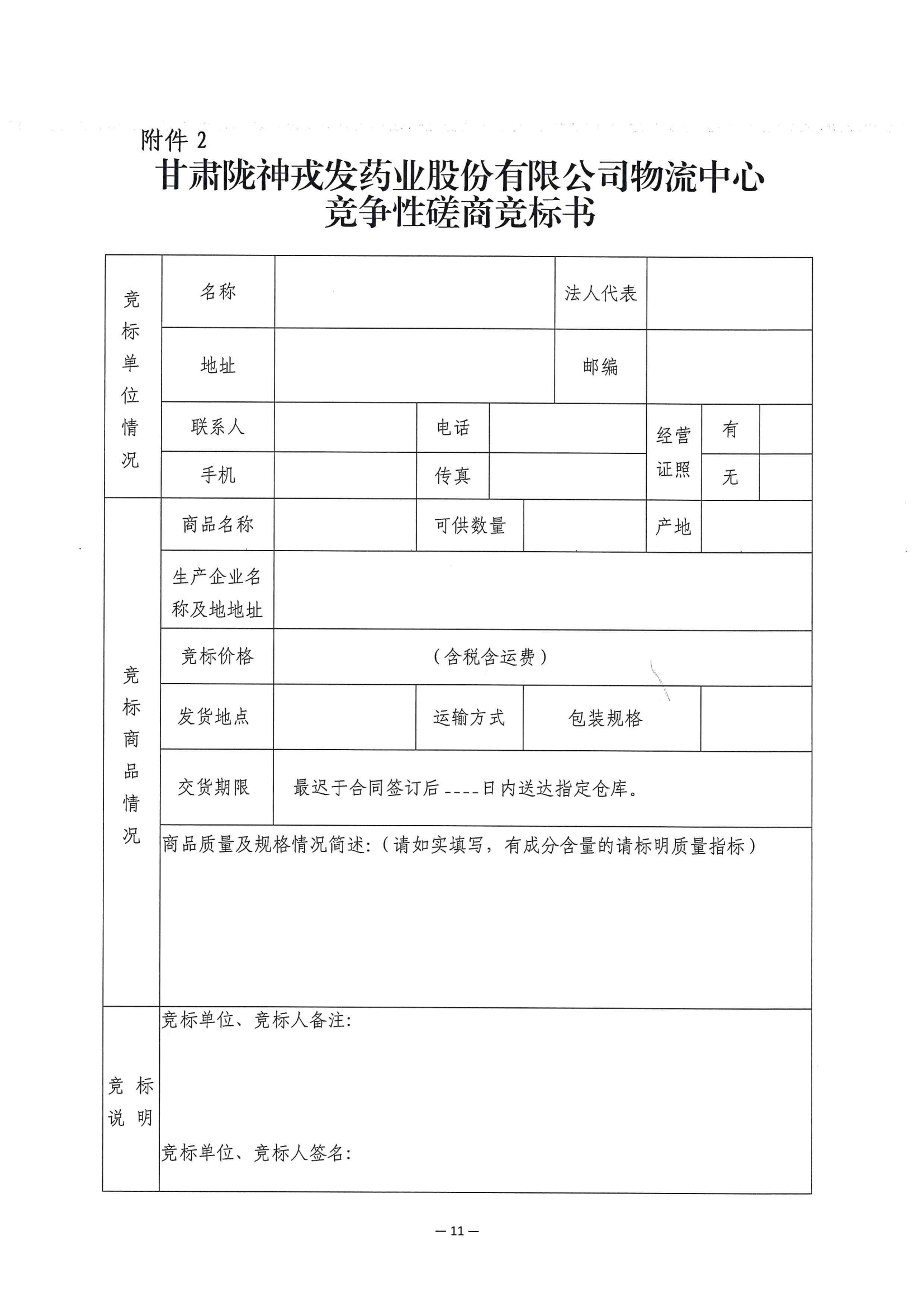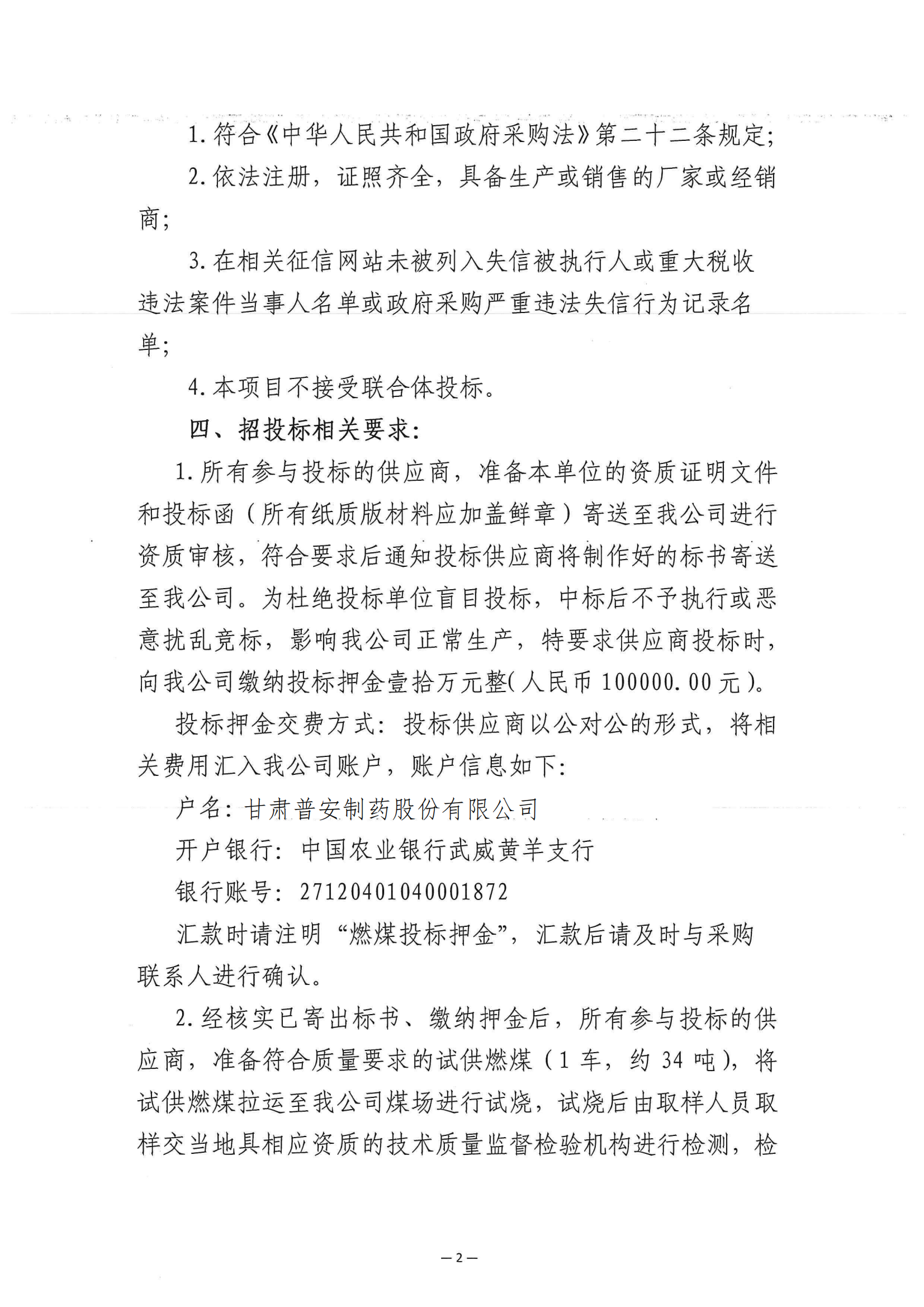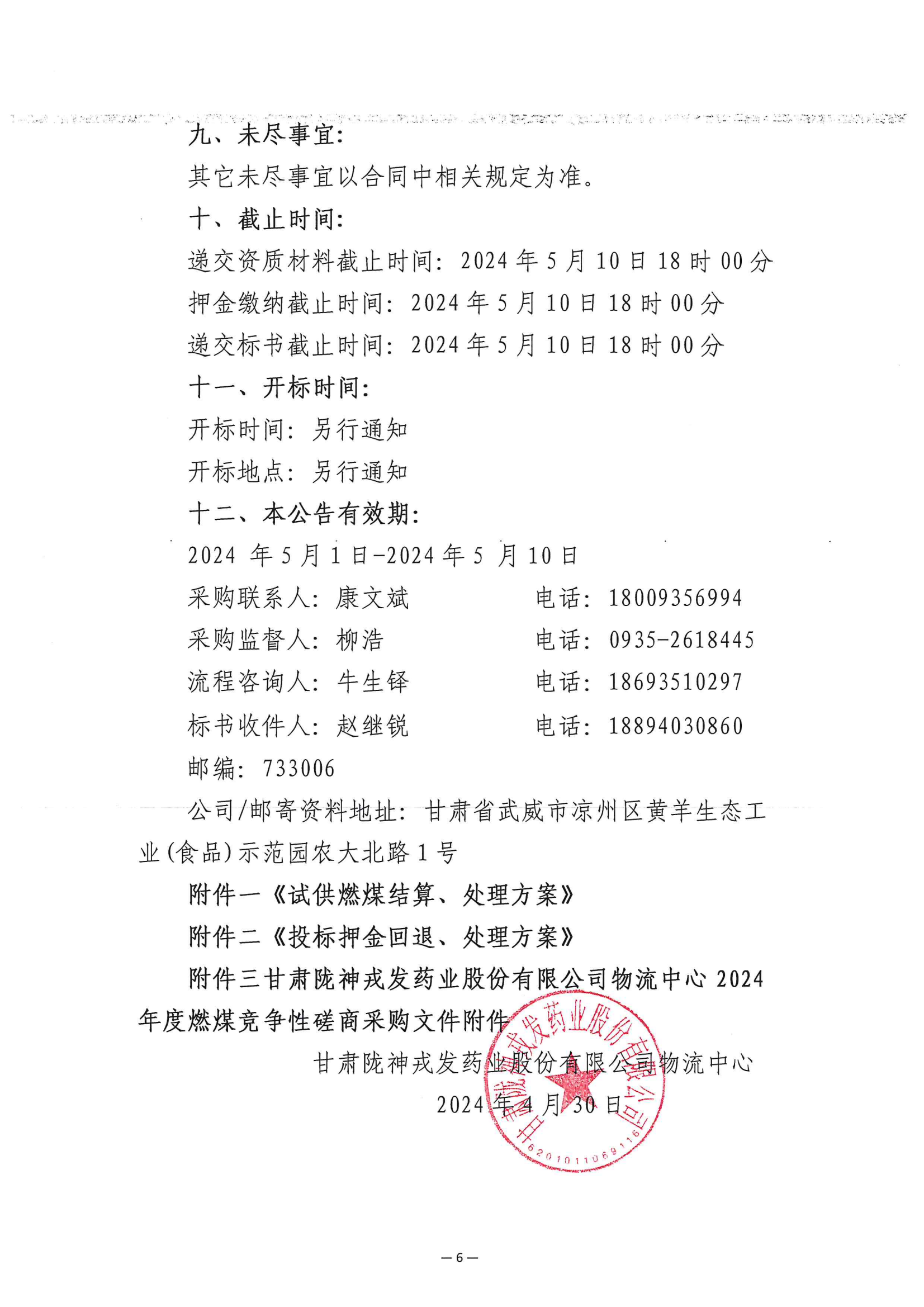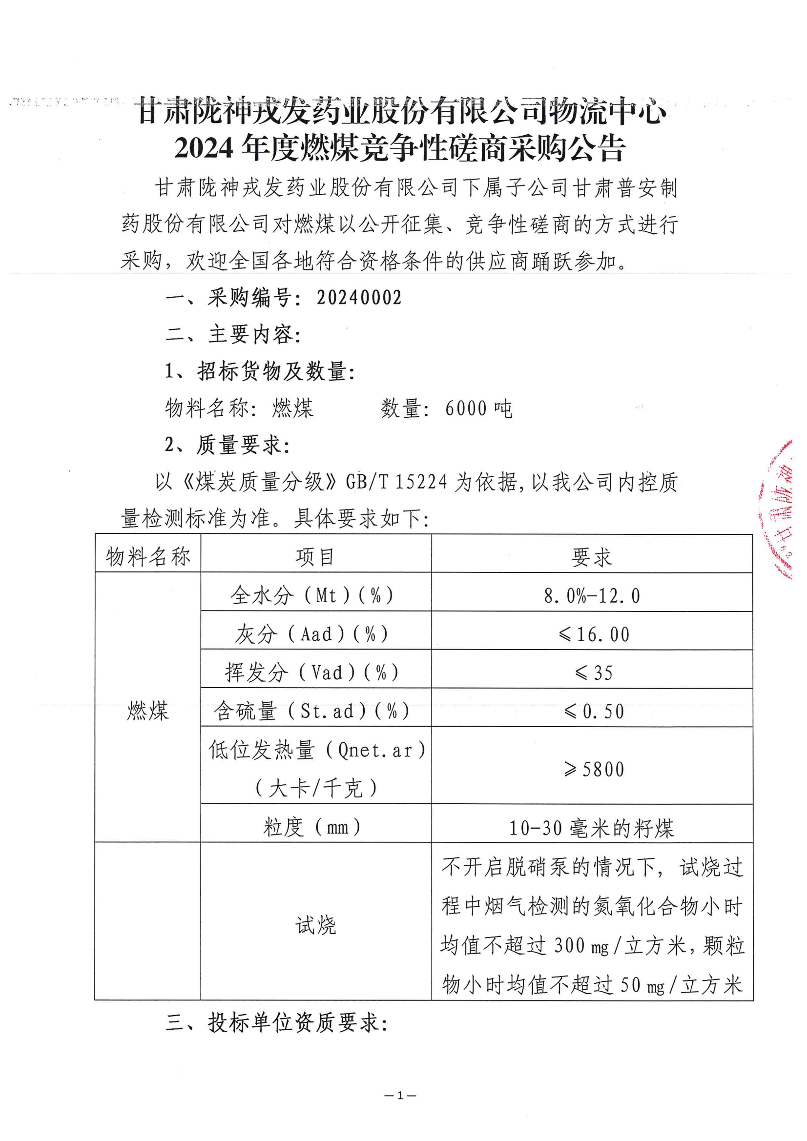 甘肅隴神戎發(fā)藥業(yè)股份有限公司物流中心2024年度燃煤競爭性磋商采購公告