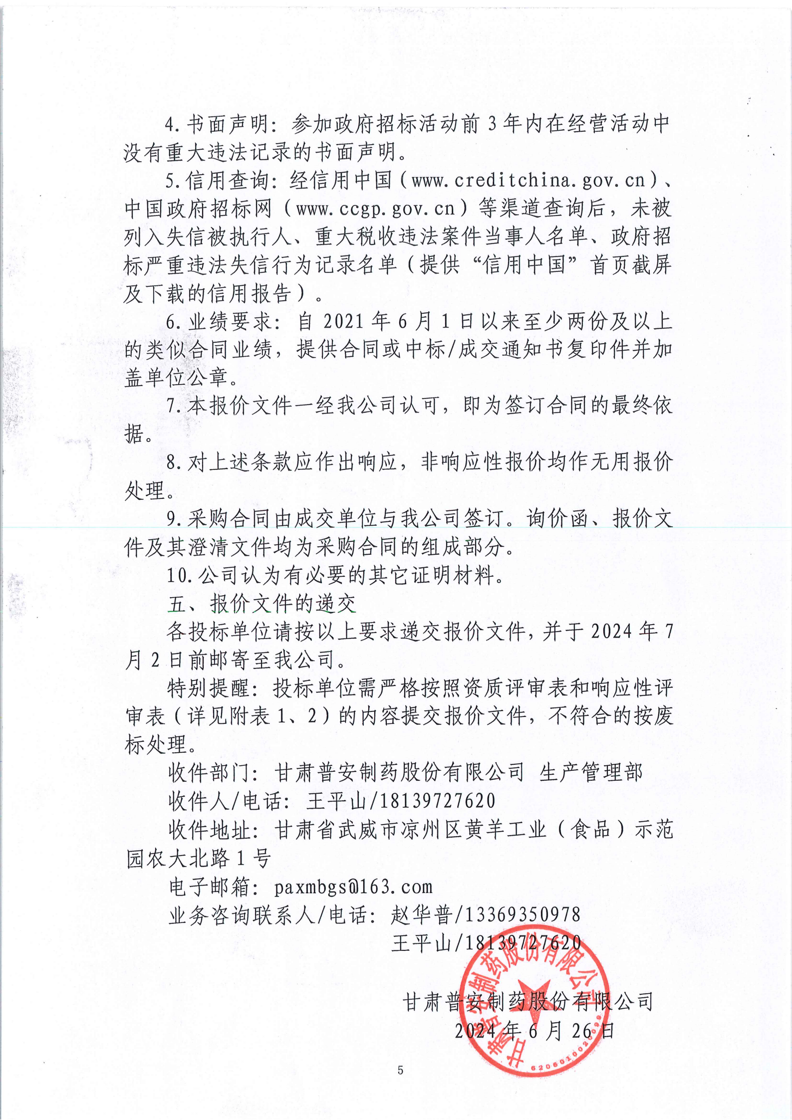 甘肅普安制藥股份有限公司年產5000萬盒(3億支)宣肺止嗽合劑等液體制劑生產線升級改造項目二期生產工藝設備(離心機)采購項目招標公告