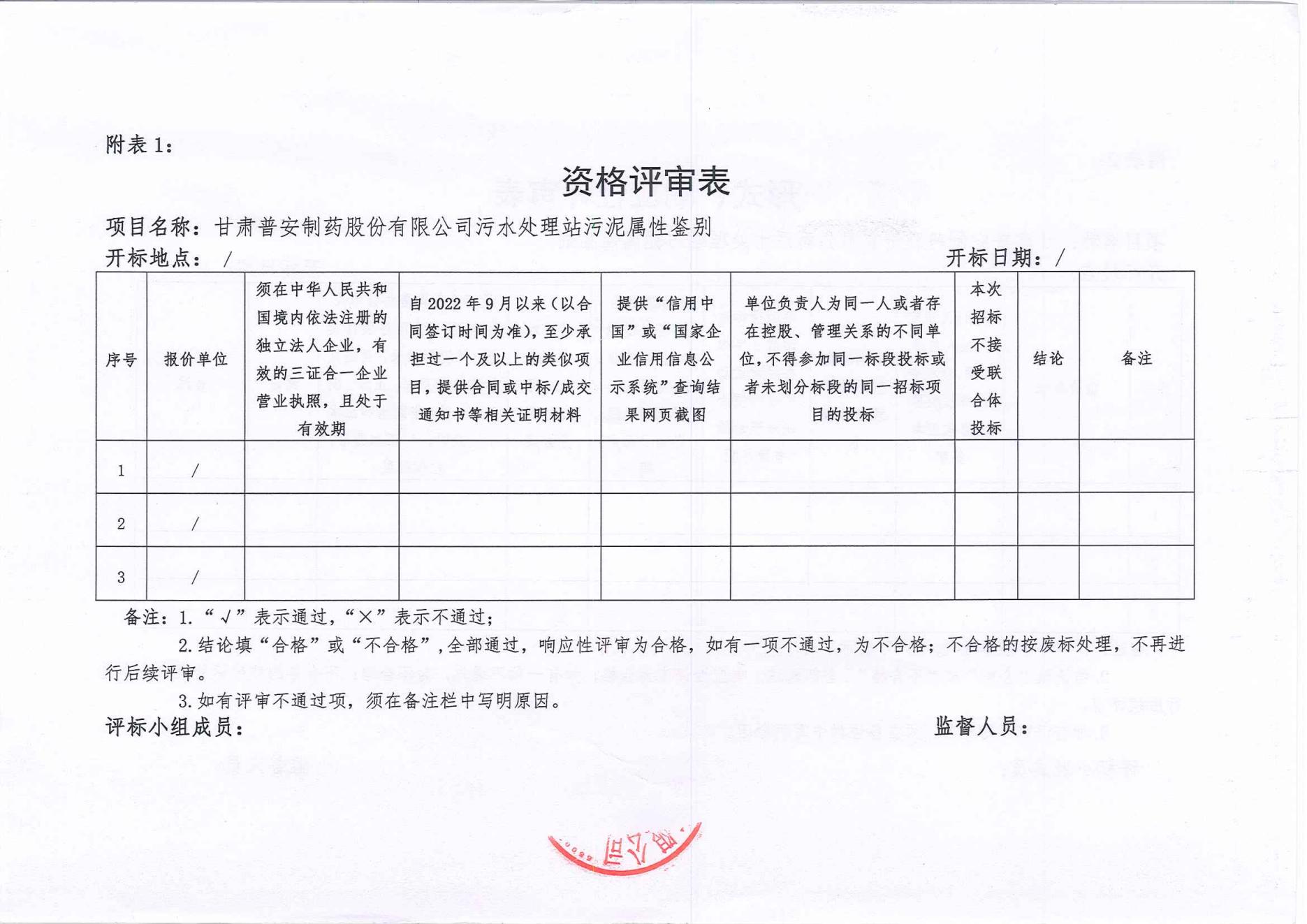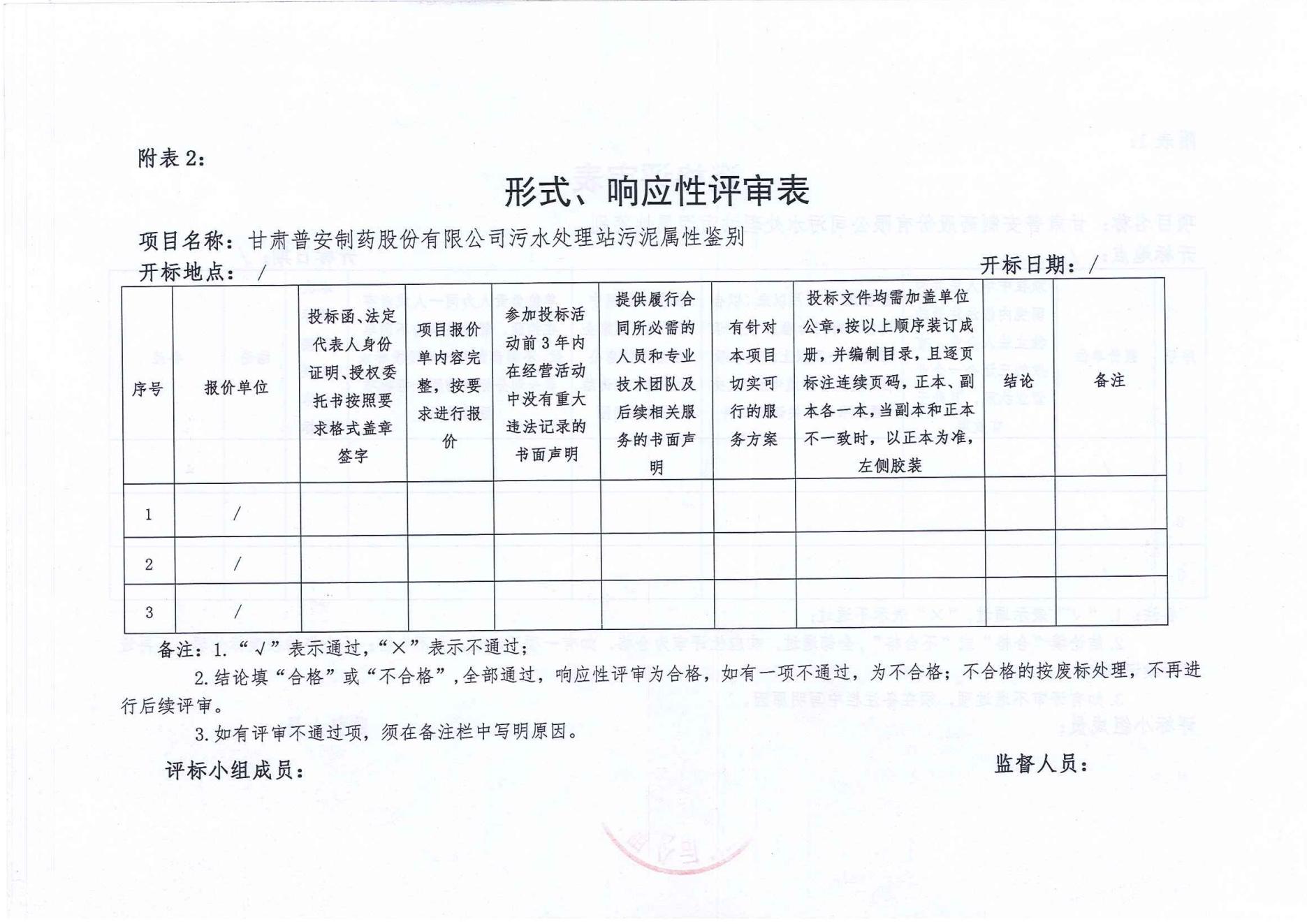 甘肅普安制藥股份有限公司污水處理站污泥屬性鑒別服務單位招標公告