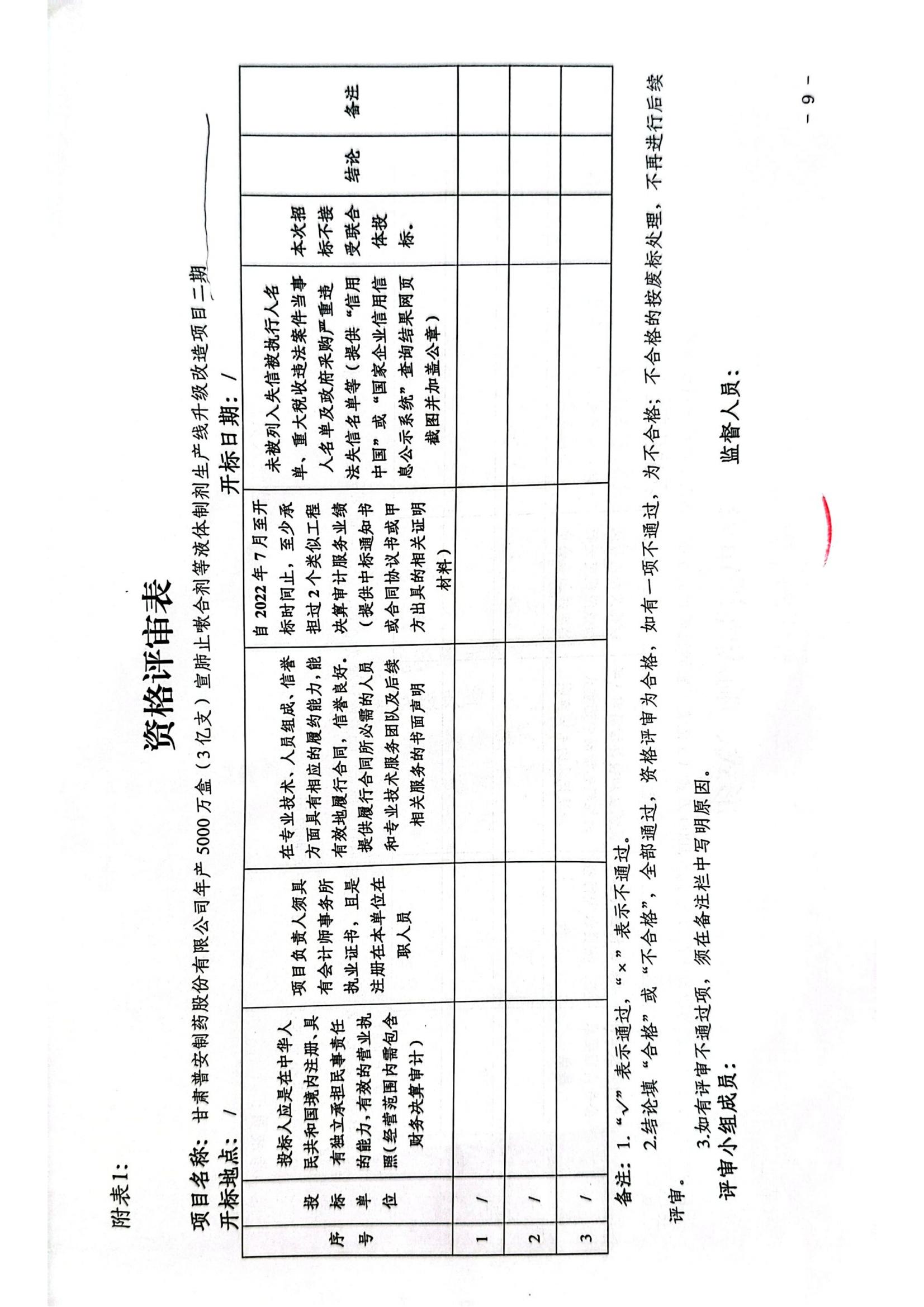 甘肅普安制藥股份有限公司年產5000萬盒宣肺止嗽合劑等液體制劑生產線升級改造項目二期竣工決算審計服務招標公告